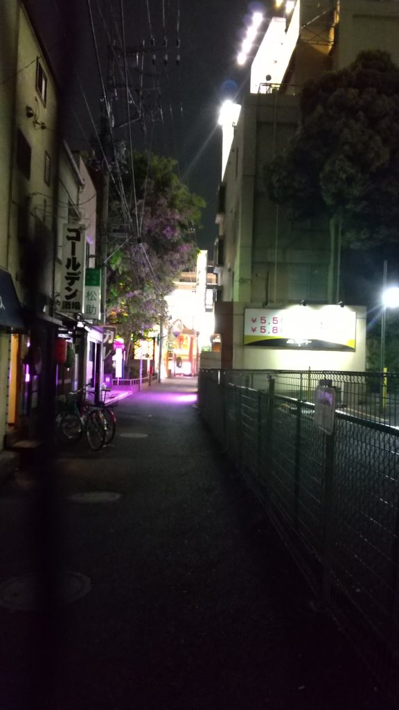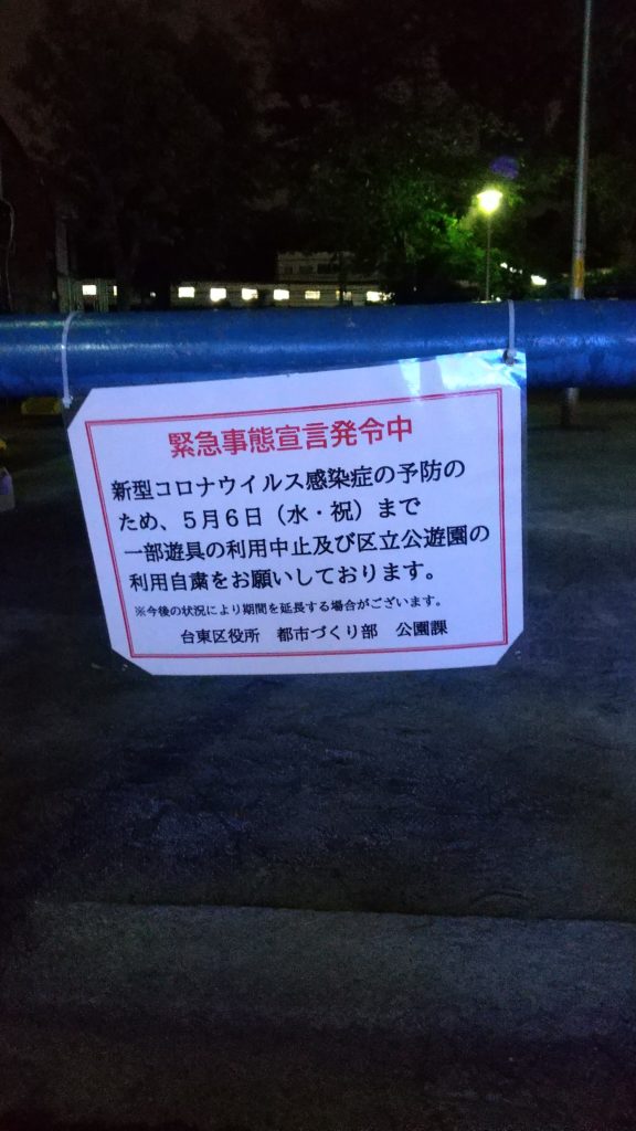 自粛中なのか公園手前の居酒屋さんは閉まってていつもより暗い感じ。