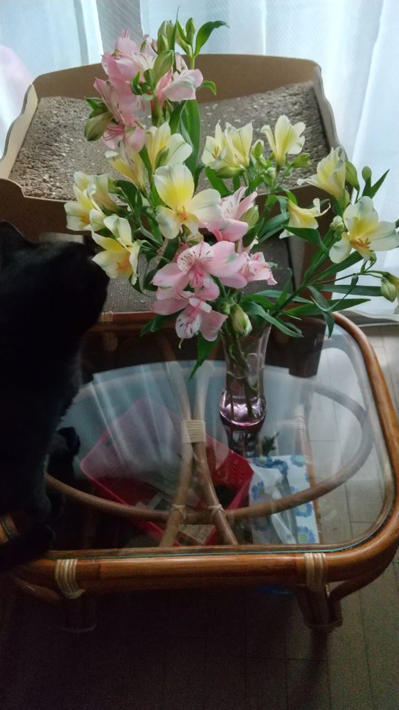 黒猫オヤジ 「で、先日購入したお花のお水替えるの忘れてれ気がついたら枯れてましたよ」