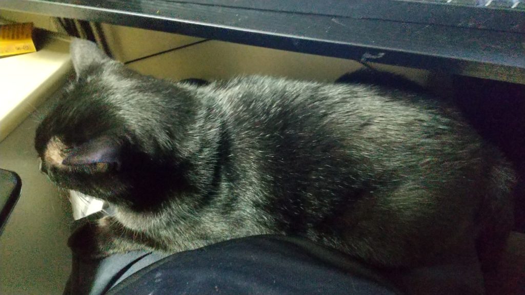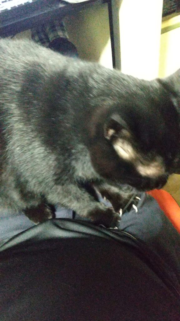 今日も膝上でフミフミ。爪が食い込んで痛い..