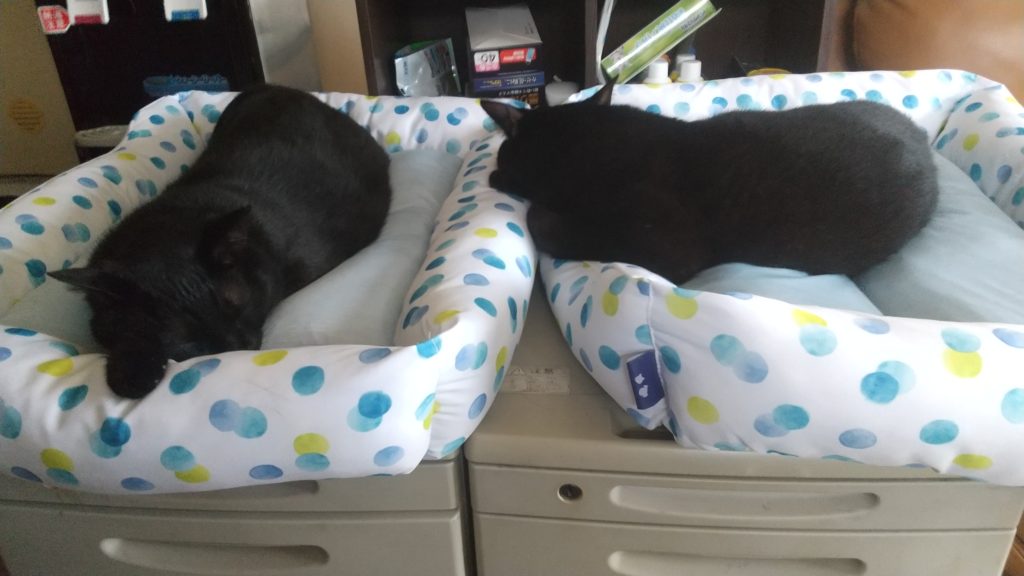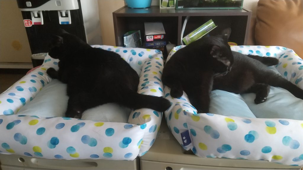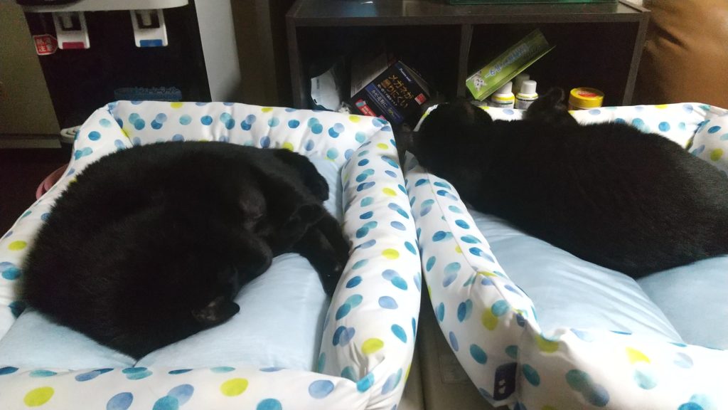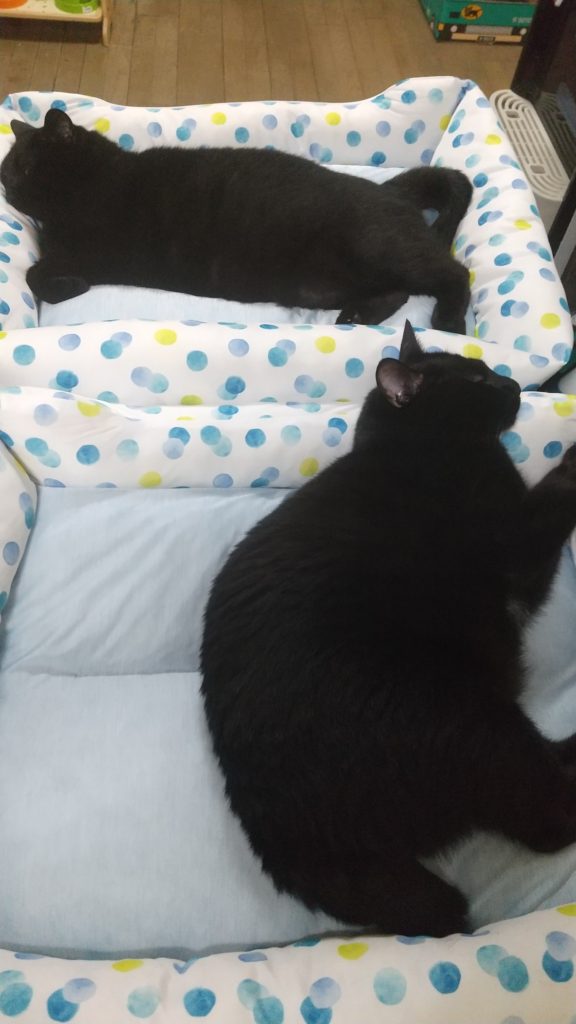 オカキもアラレも、のびのび寝れて気持ち良さそう!