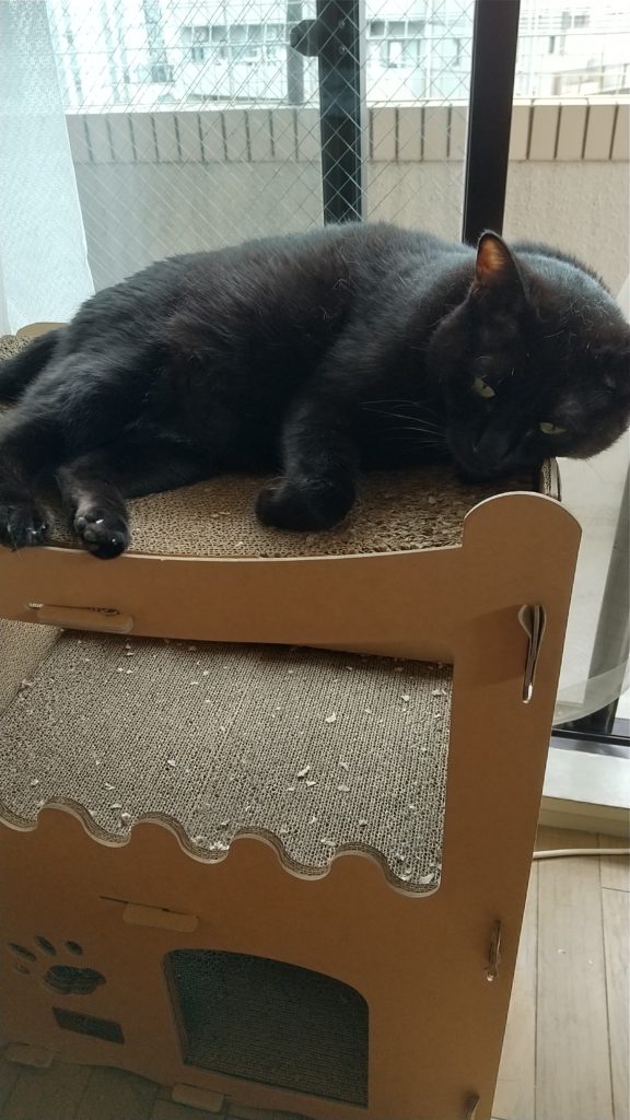 今日は涼しいせいか朝から段ボールハウスで寛ぐオカキと