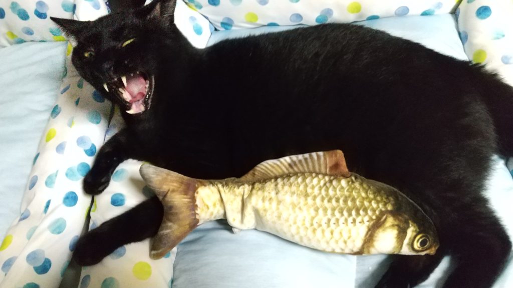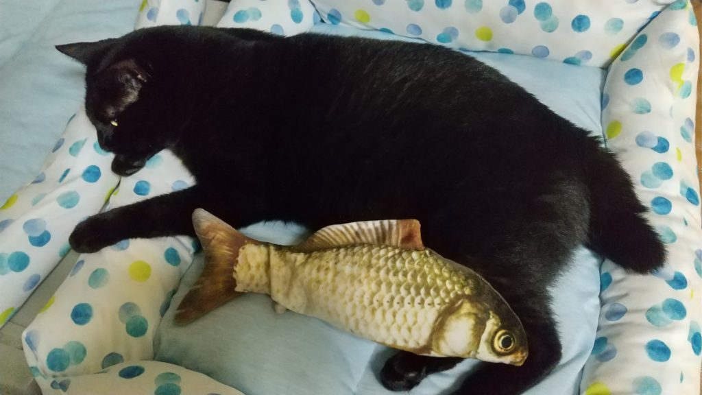先日アマゾンで購入した電動魚にはさっぱりの反応の黒猫達。