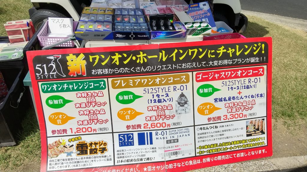 特定のパー3のホールで参加費を払って挑戦し、ワンオンに成功すれば抽選でいろいろな賞品がもらえるというもの。