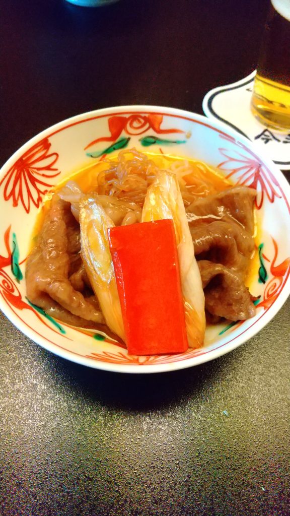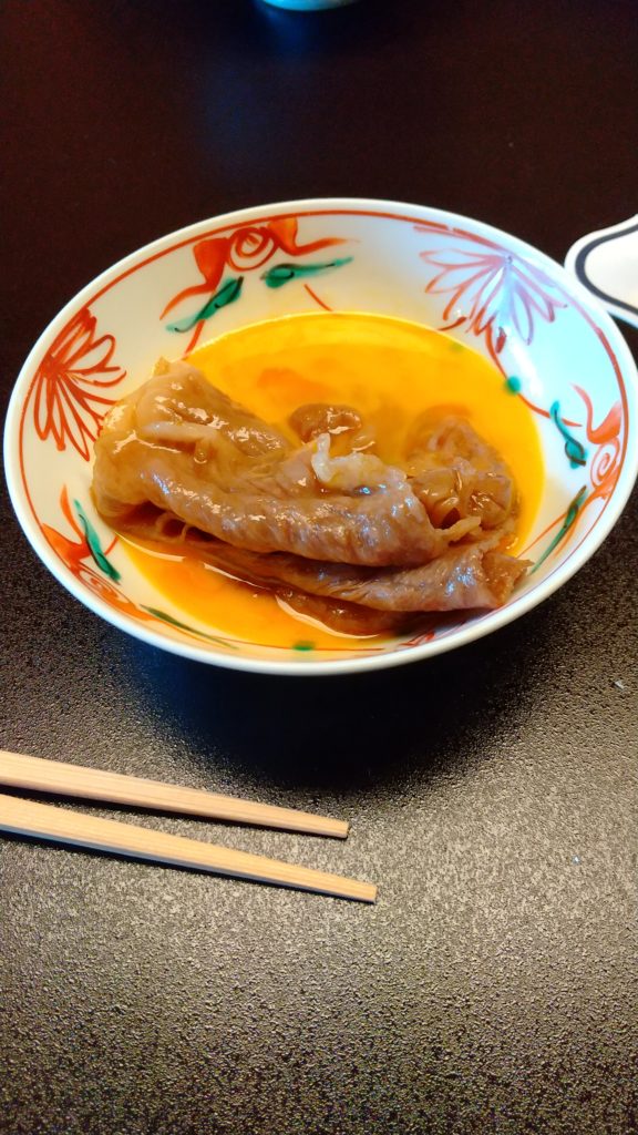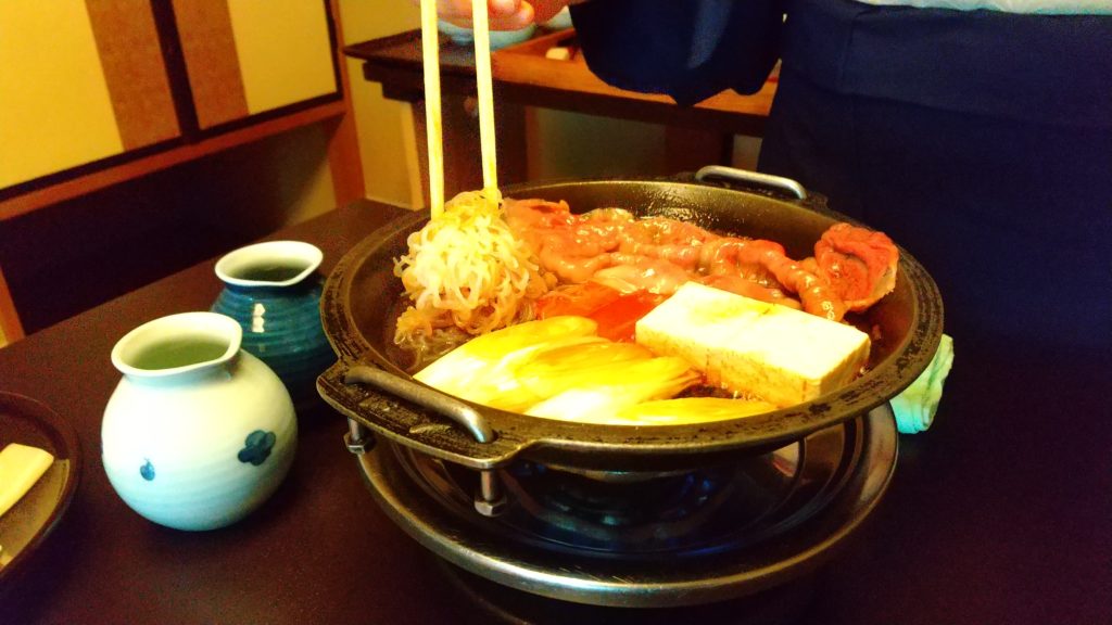 こんな感じで店員さんがすき焼きを作ってくれるので打合せ中に集中できるのが良し。