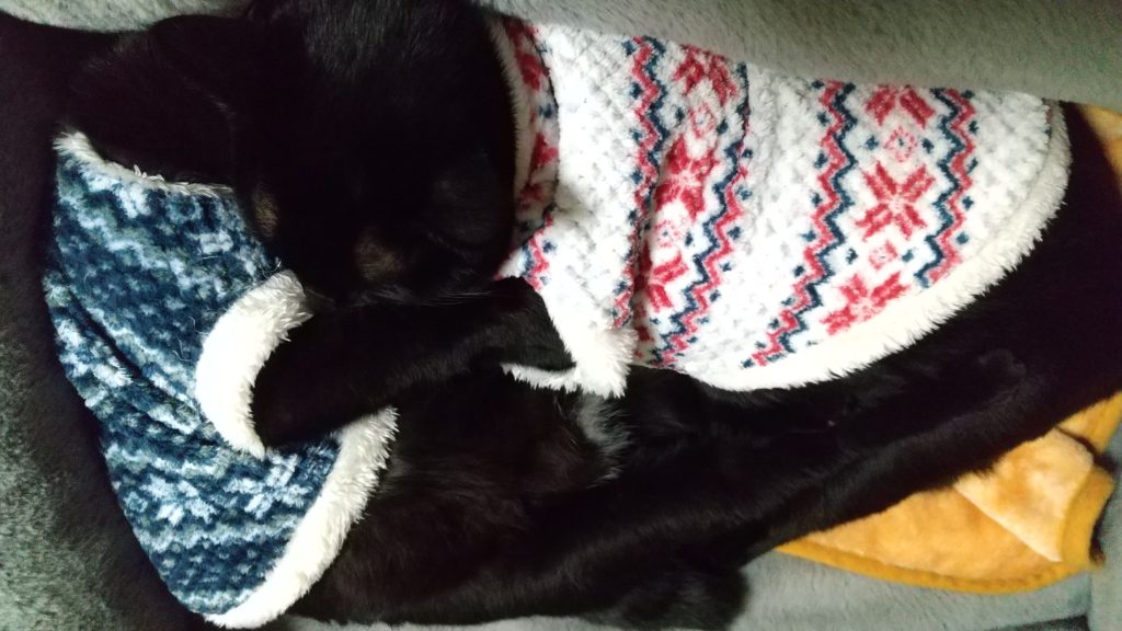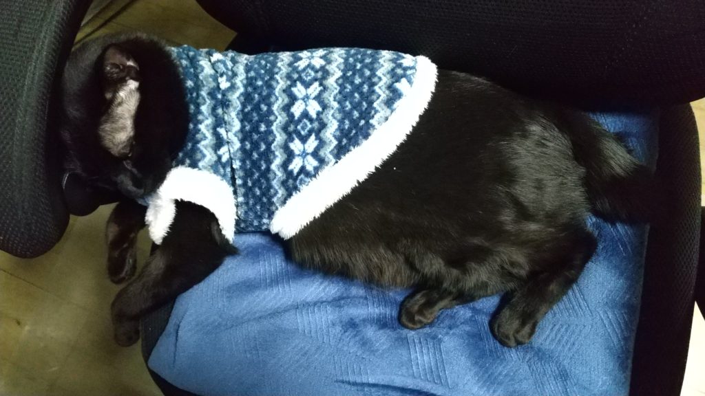 最近、黒猫達も寒そうにしてるし、ダメモトで2着購入(2着で600円)