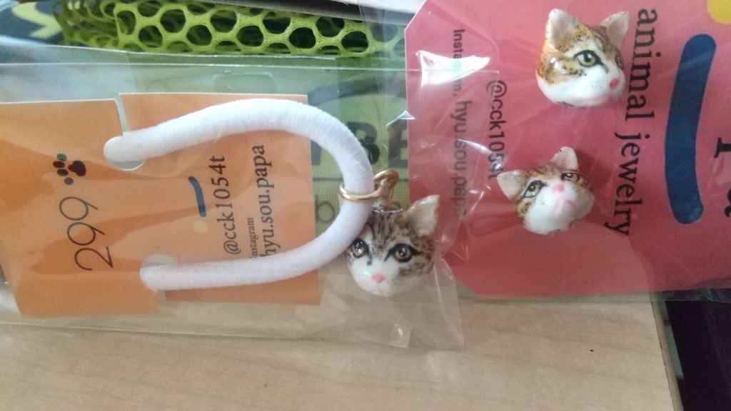 注文したのは自分用のキーホールダーと猫好き女子用のピアスとヘアゴム。