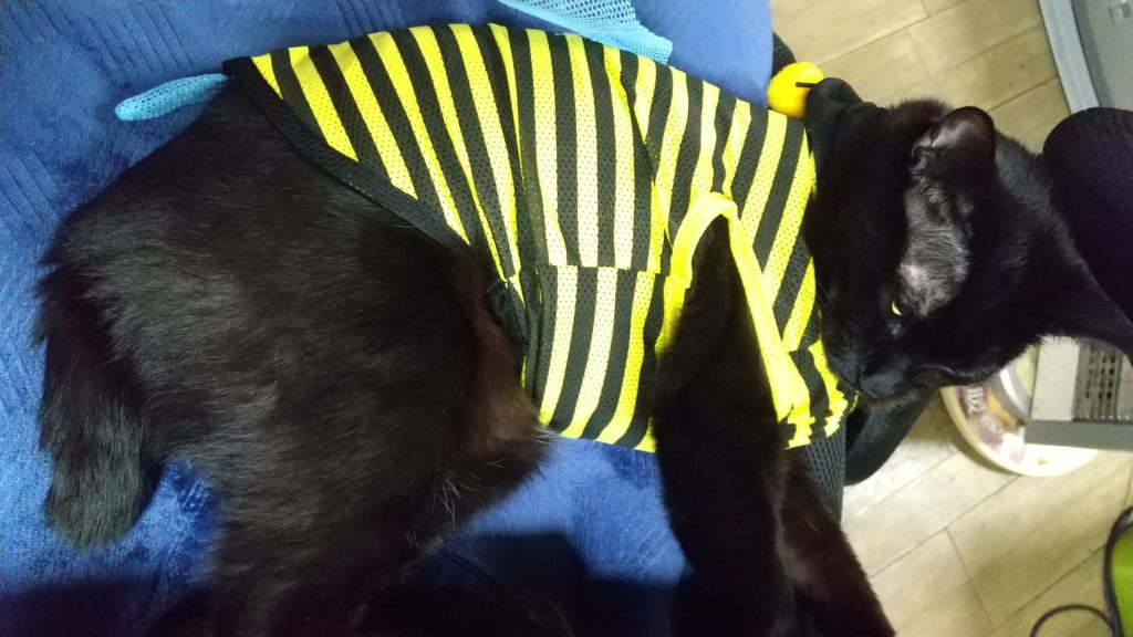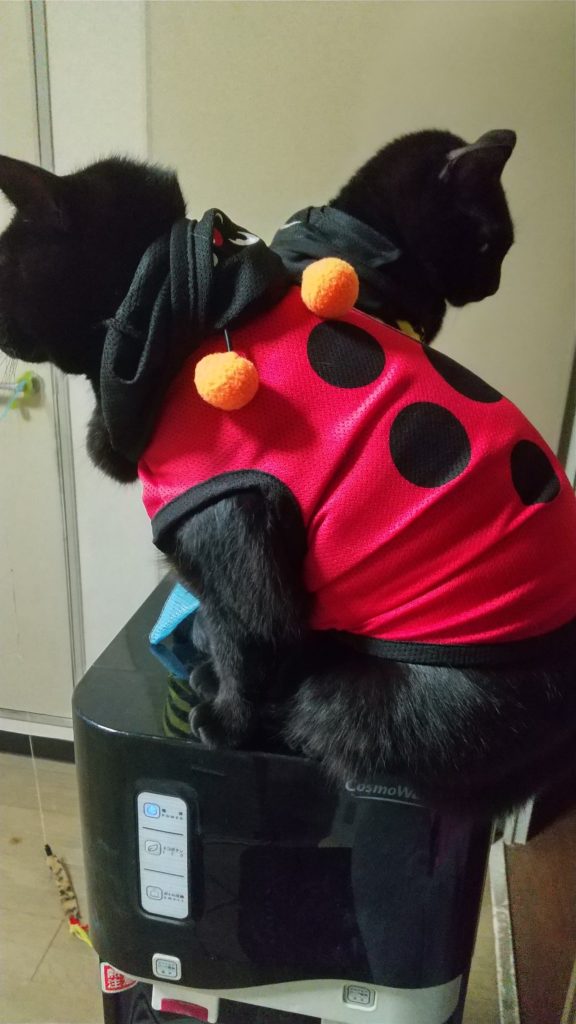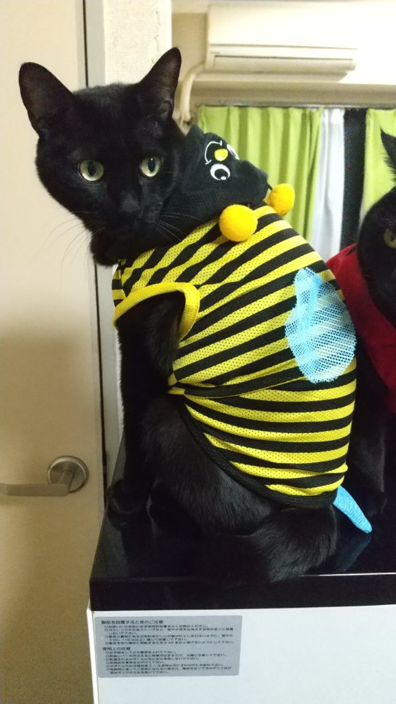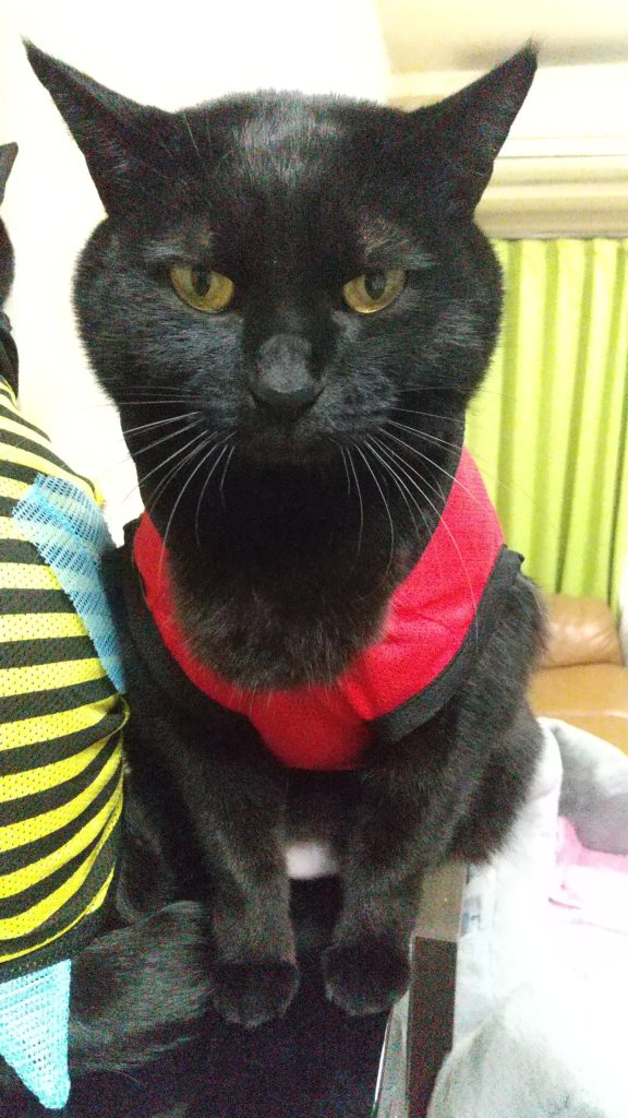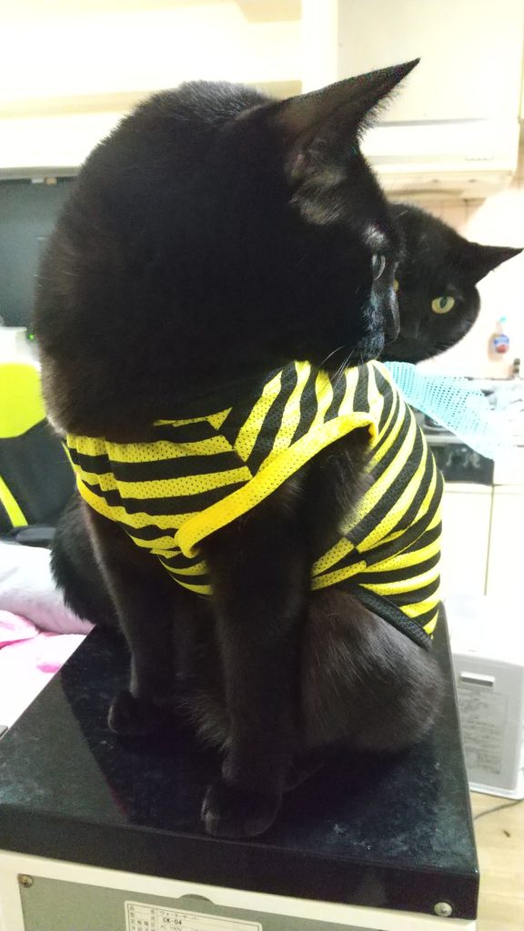 服着せても、特に問題なさそうなので、冬の間は黒猫ファッションショーを楽しもうかと。(ダイソーの安いのしか買いませんが)