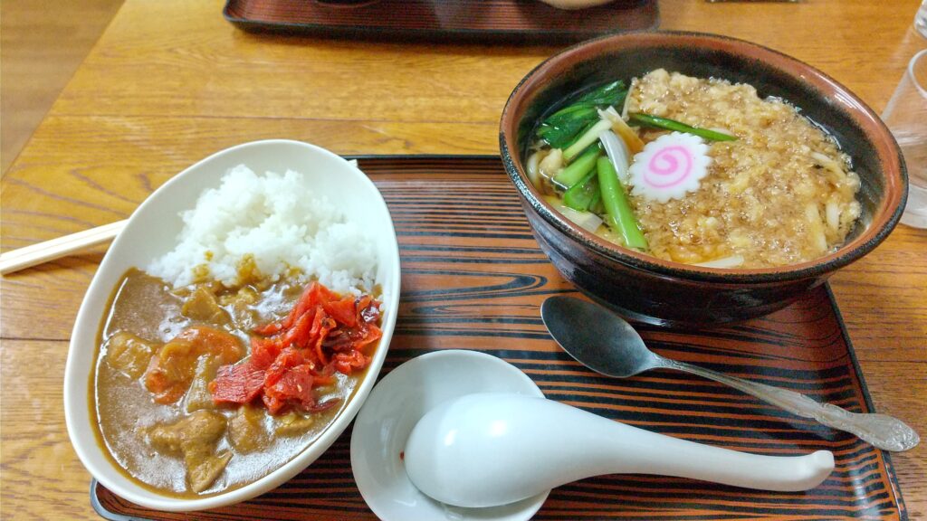 昼飯のたぬきうどんとカレーセット!