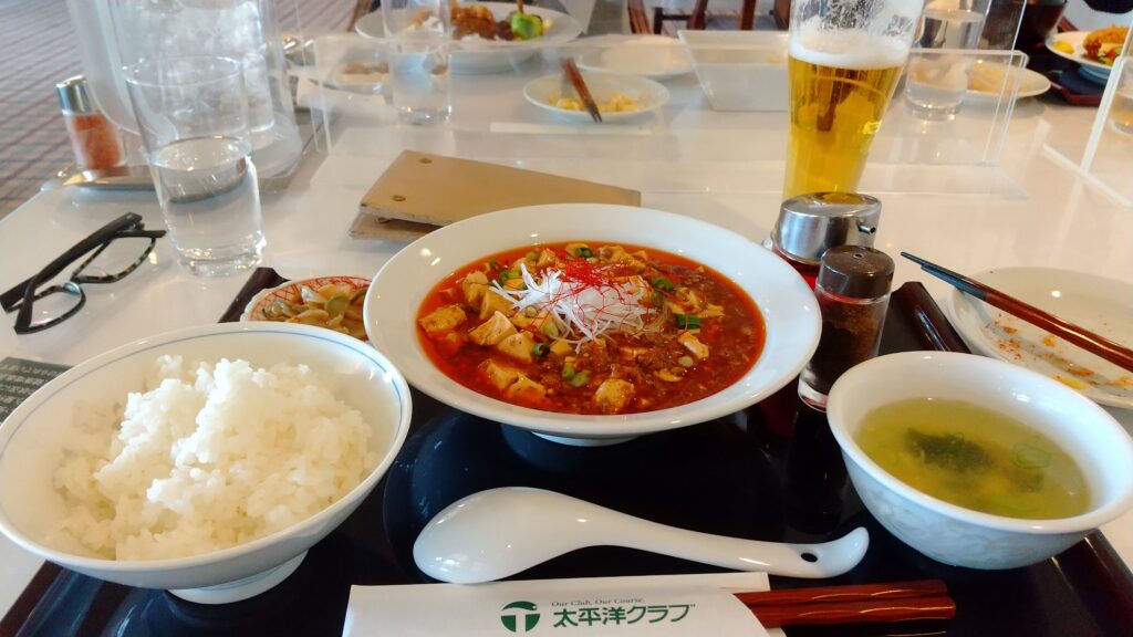 マーボー豆腐とビール! ピリッとした辛さがまた良し。