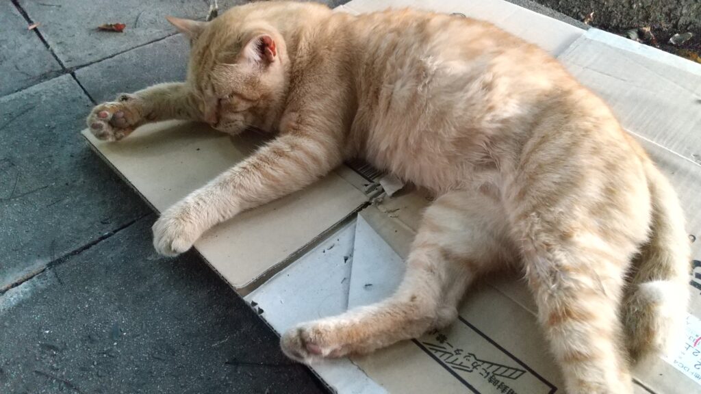 休憩場所の公園で気持ち良さそうにねてる猫!