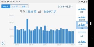 少し前から始めた一日一万歩チャレンジ。これが8月は毎日達成できたこと!