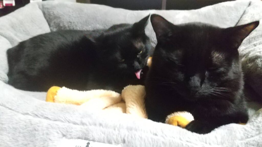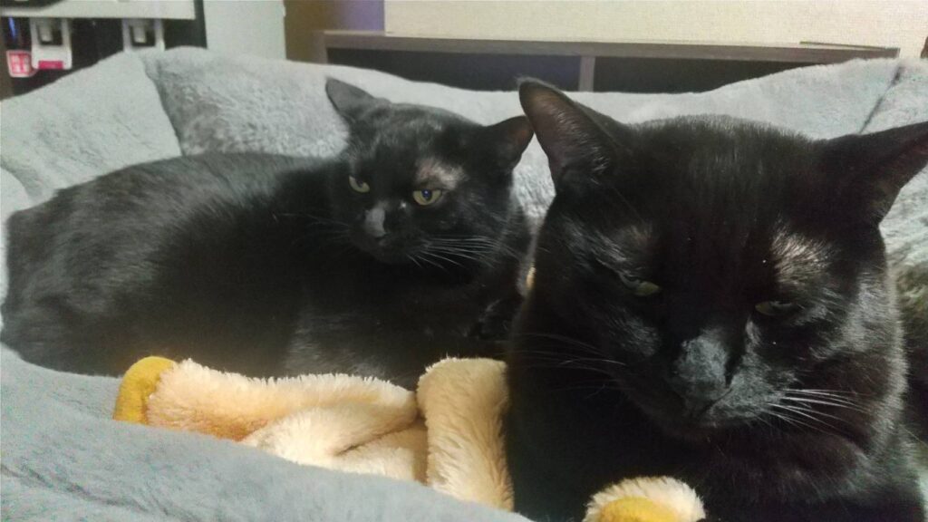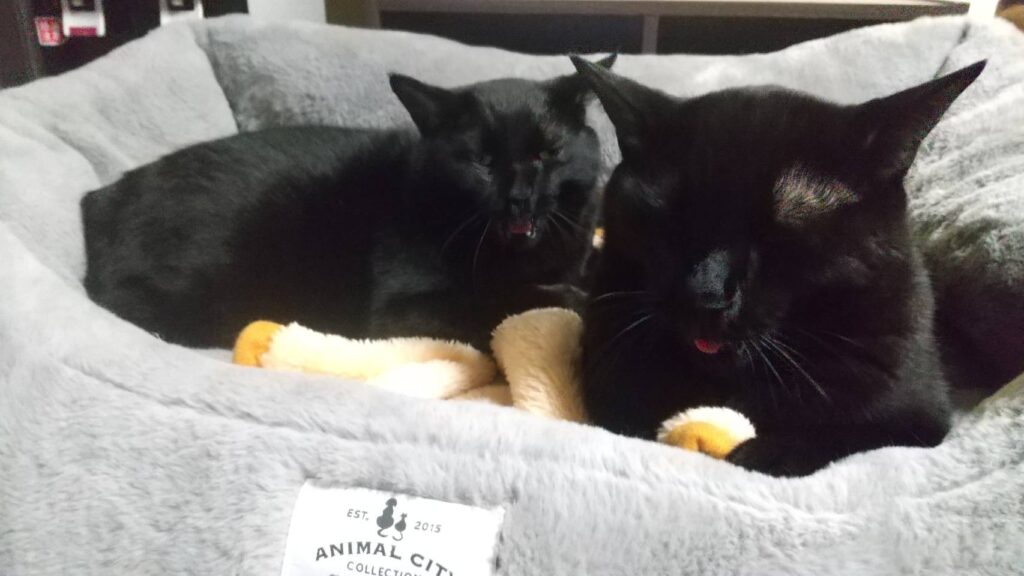 肌寒くなって冬用ベットが黒猫達の定位置に。