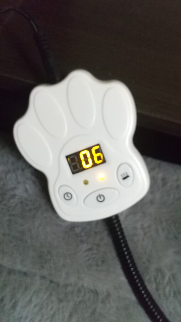 手で触ってみると、ホットカーペットを被せてる部分はほんのり暖かい。