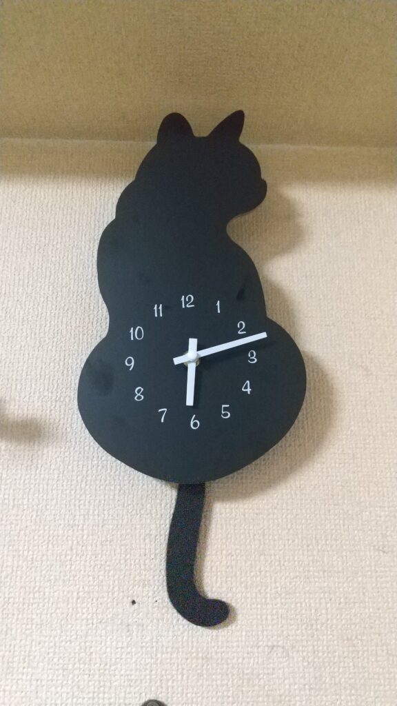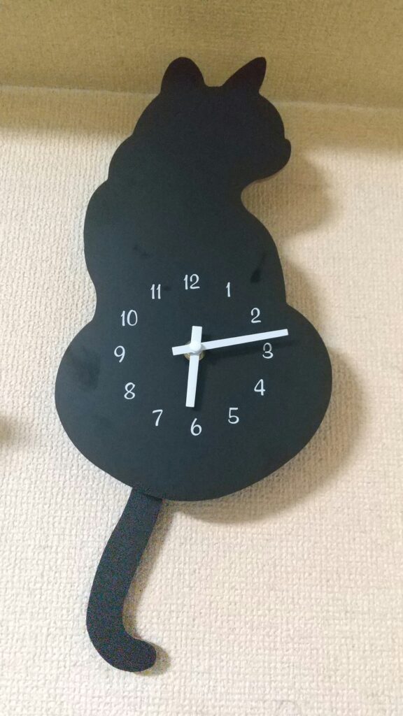 尻尾がフリフリ動くかわいい黒猫の時計。