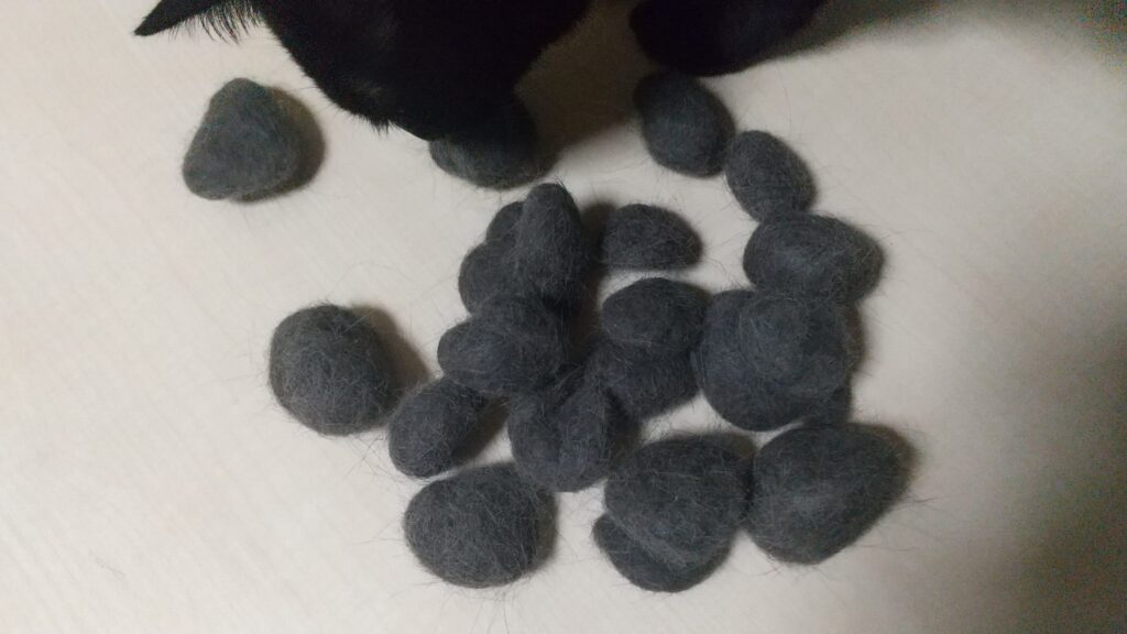 黒猫達のブラッシング時に取れた毛を毎回集めて、そこそこ溜まったんで何か作ろうかなと。