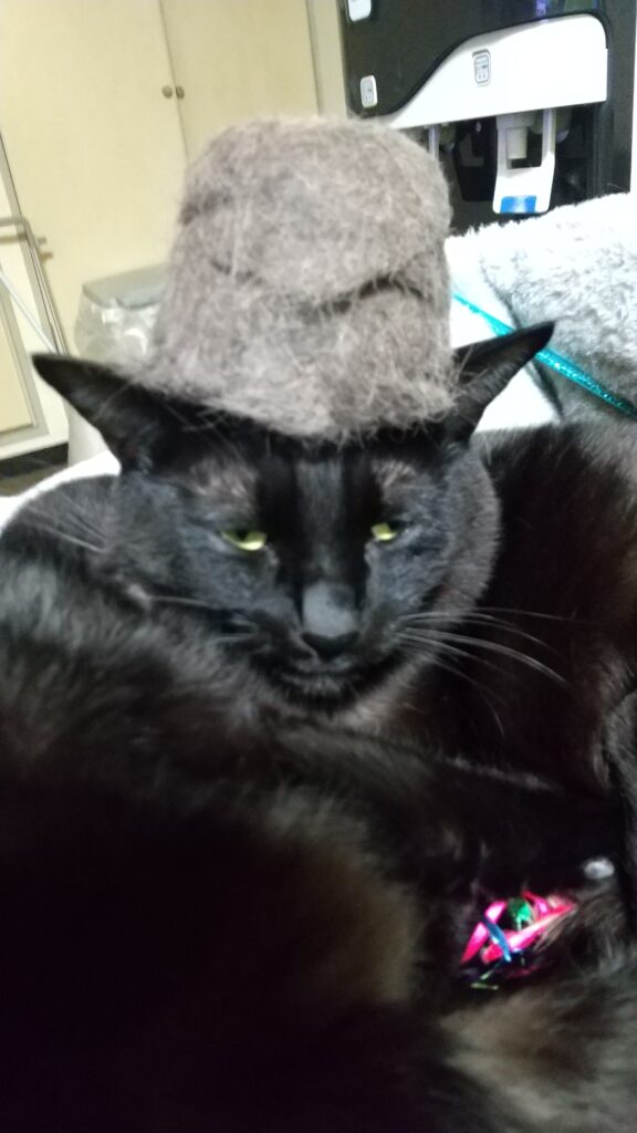 で、この毛の固まりを集めて丸めて、何だかんで帽子を作ってみた!