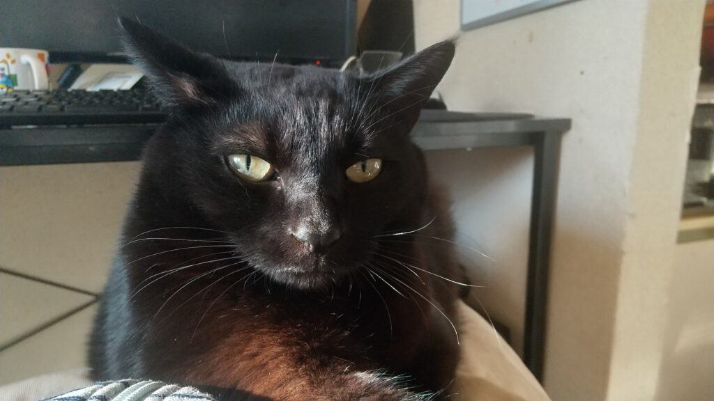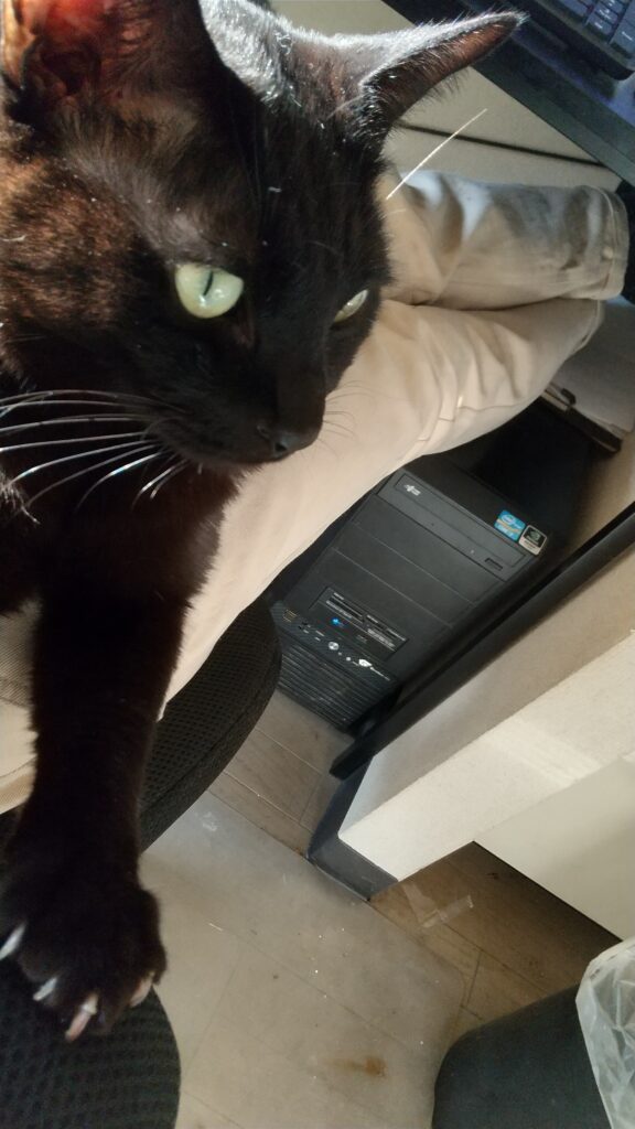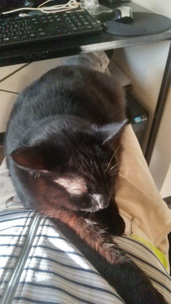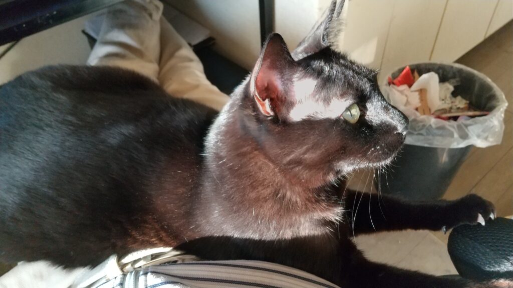 仕事の休憩中にお腹の上に乗ってきたオカキ。お腹を揺らすと落ちないように爪をガッチリと。