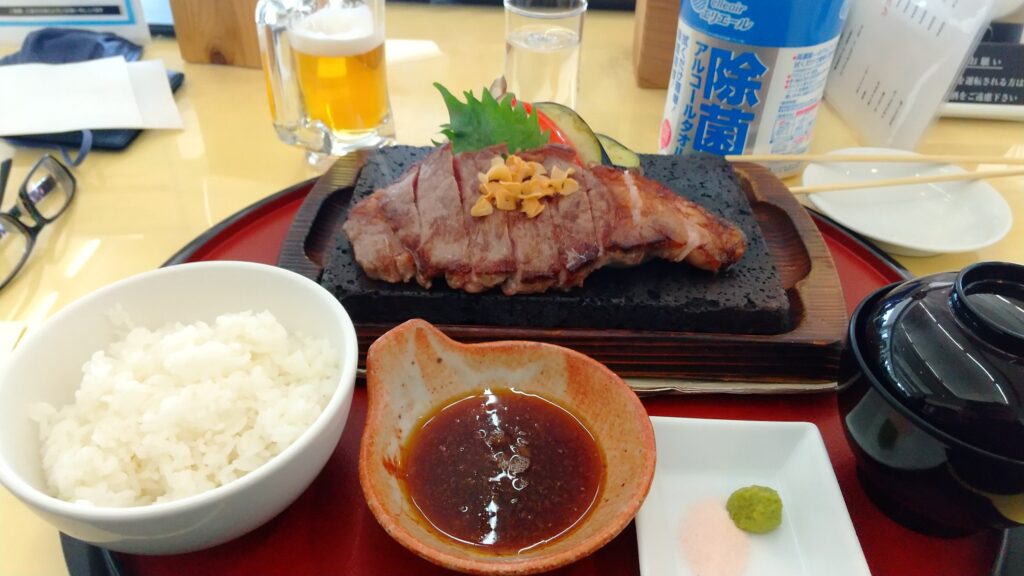 ステーキセット。家でステーキ焼いて食べるよりは美味しかったけどイマイチ。