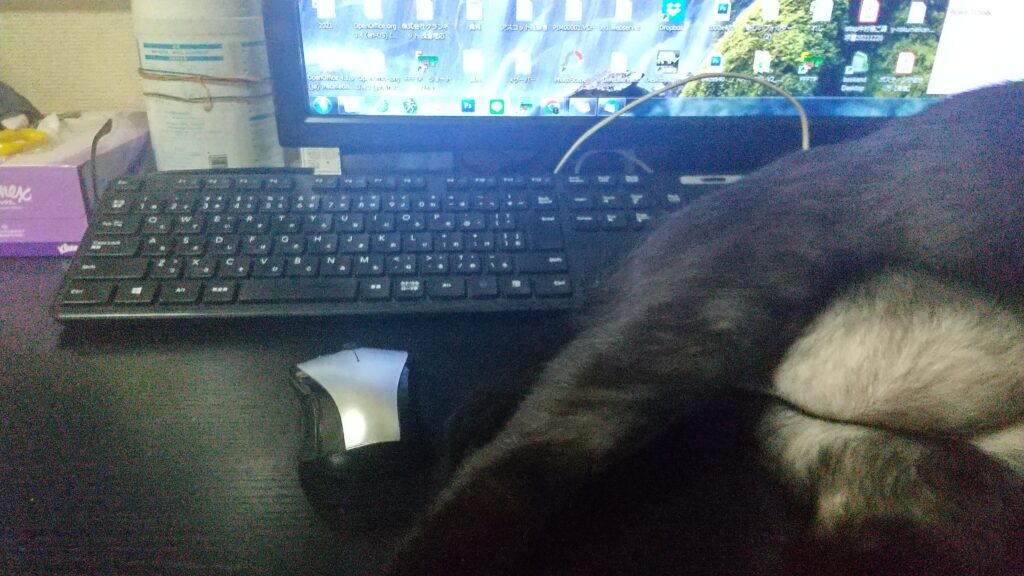 PC操作が必要な時は、そお~っとキーボードを横に移動させて