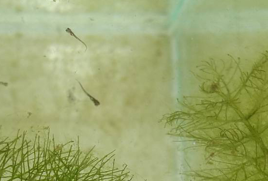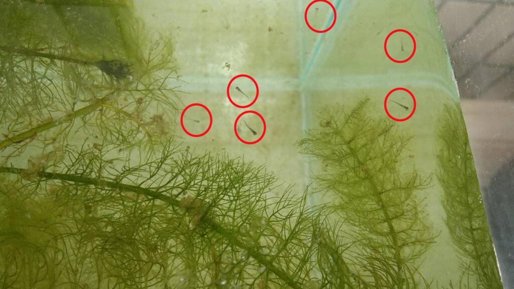 何日が放置して水槽を眺めてみると、卵が孵化したようでメダカの稚魚がウジャウジャと
