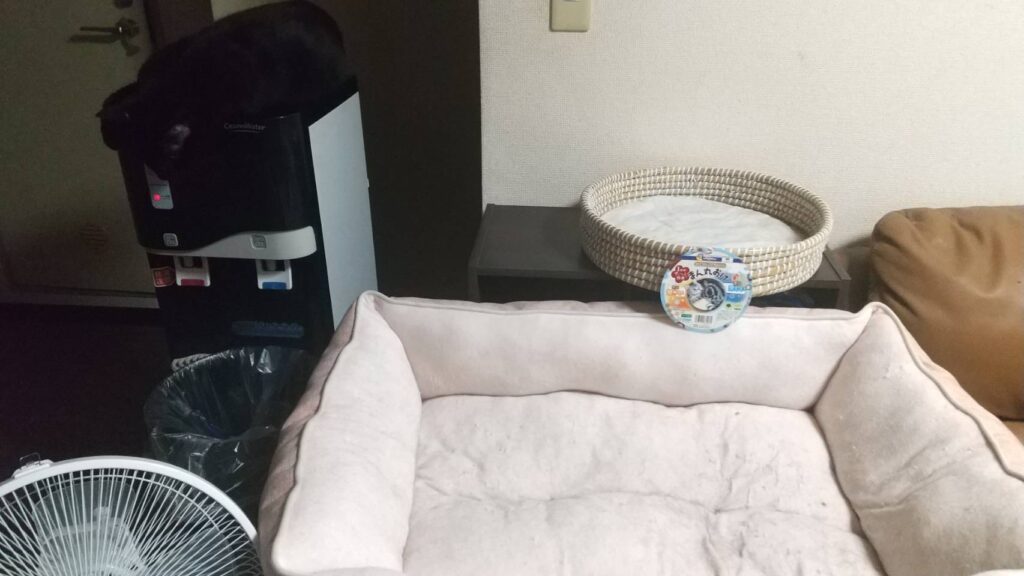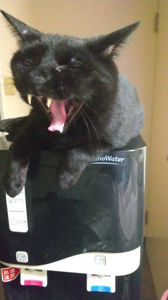 隣のウォーターサーバーの上で寝る始末...