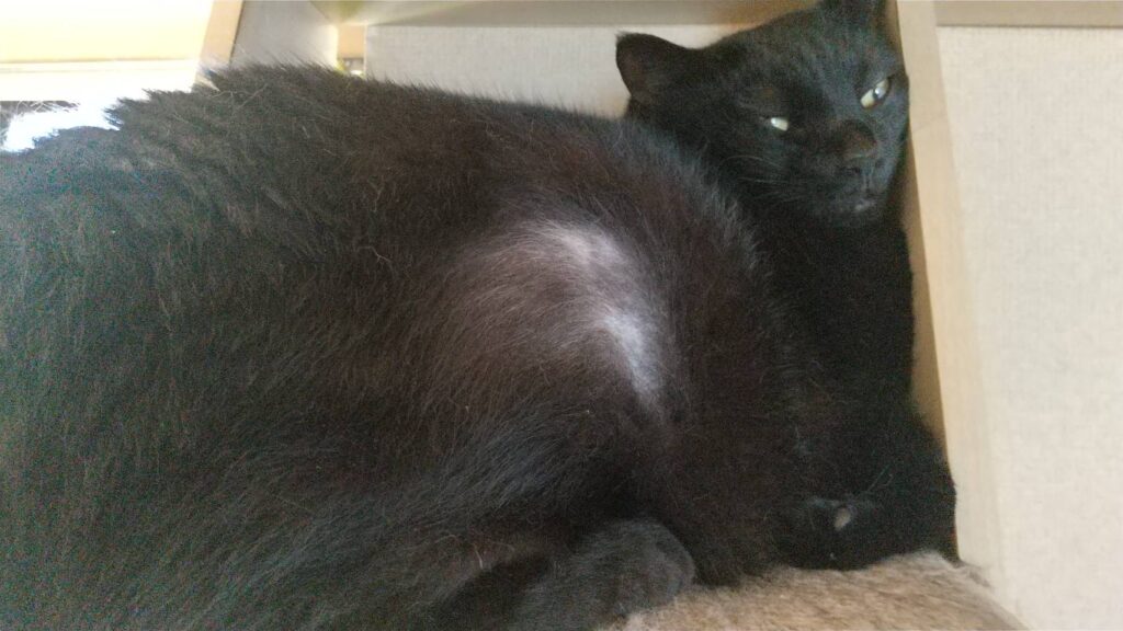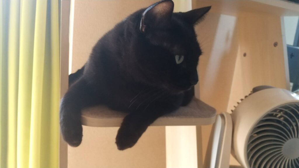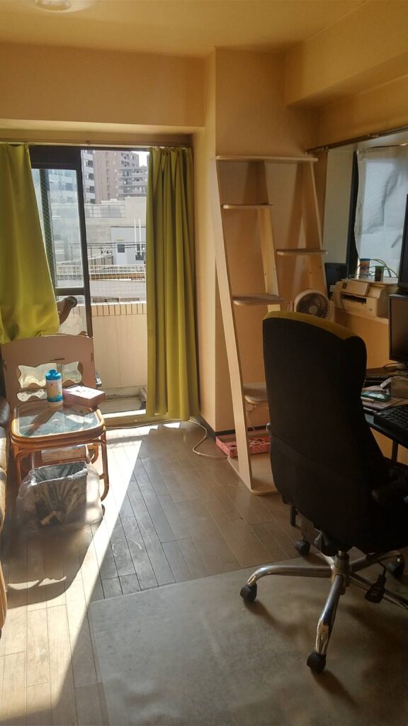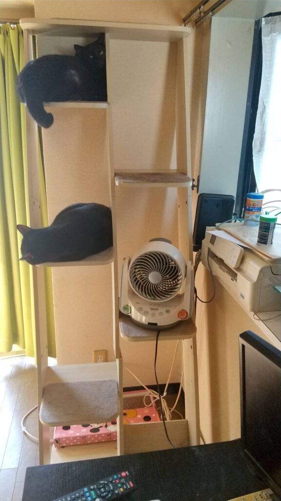 机とPCを撤去して、寝室にある二つのキャットタワの一つをここに配置!