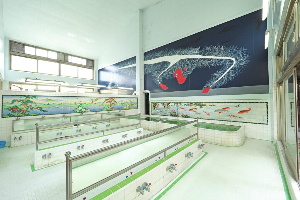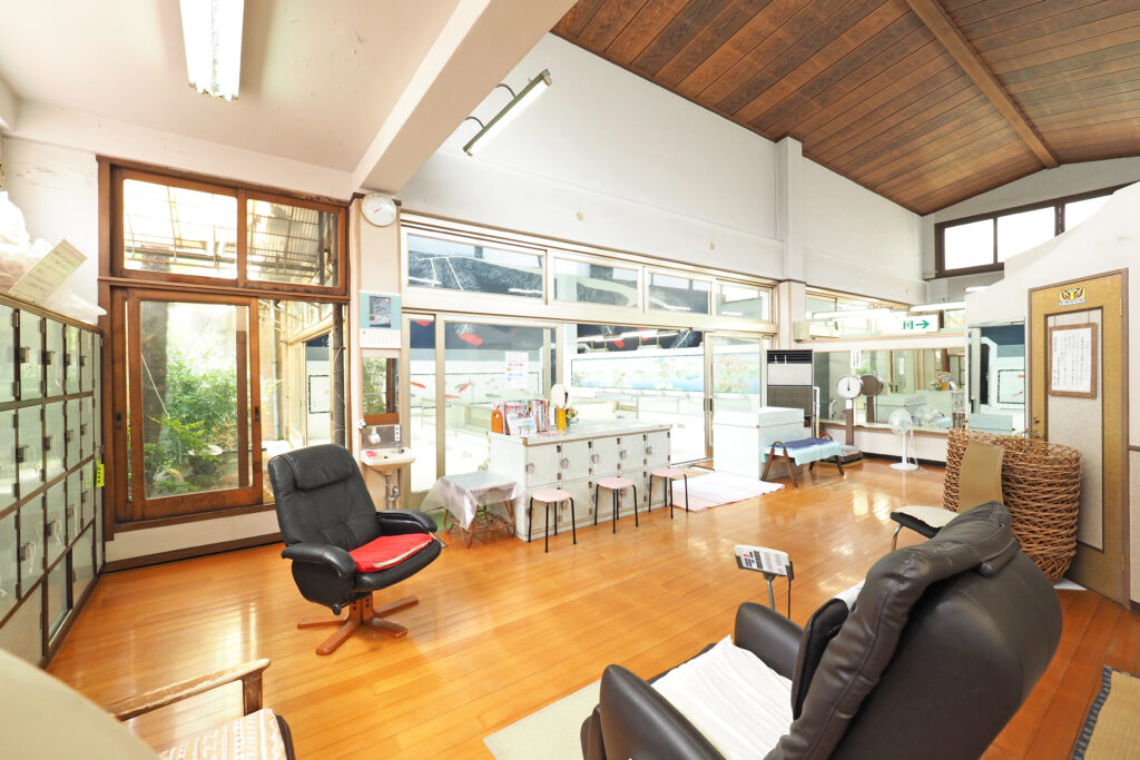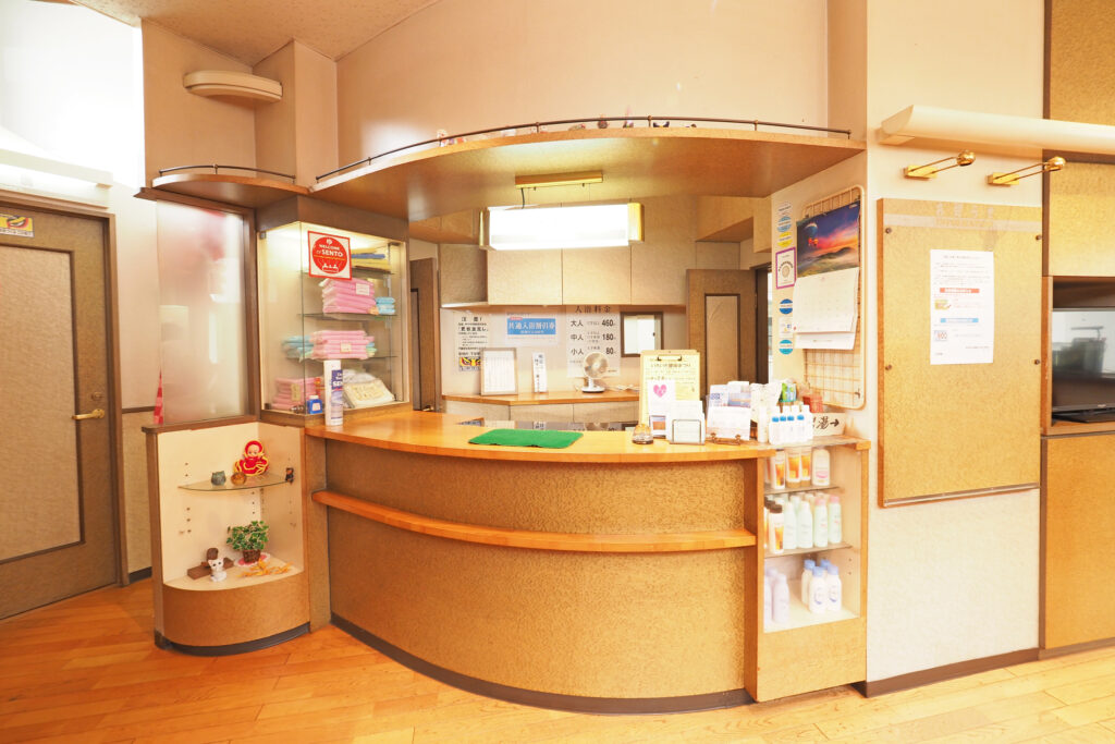 暖簾をくぐって、下駄箱に靴を入れて中に入ると番台があって昭和の雰囲気。