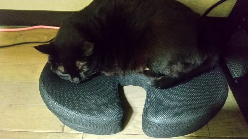 さて、先日、腰痛対策用にいただいた低反発のイス用クッション。