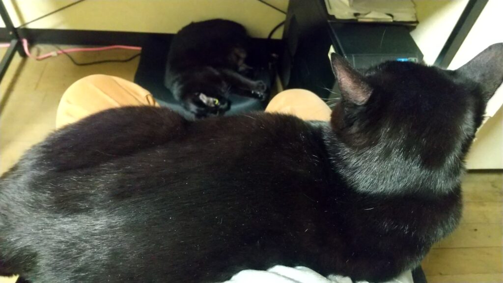 少し離れて、アラレがどいてもらうの待つ黒猫親父でした