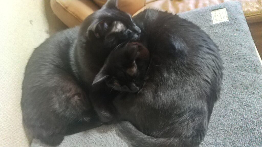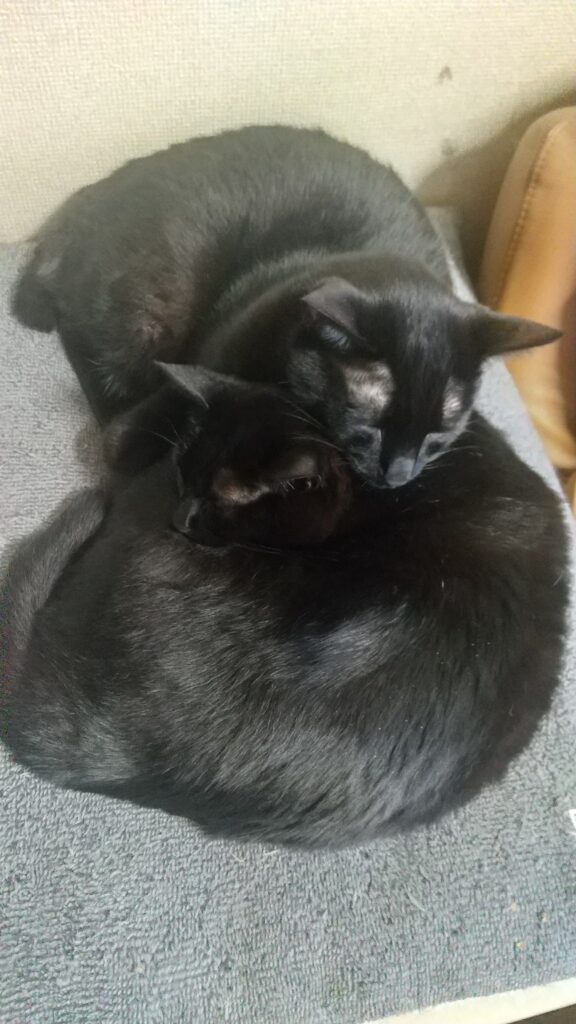変らず元気でデブな黒猫達。そして、何時も同様にべったり。