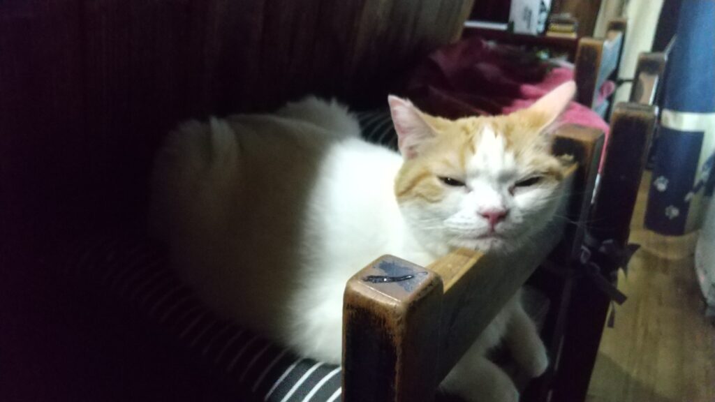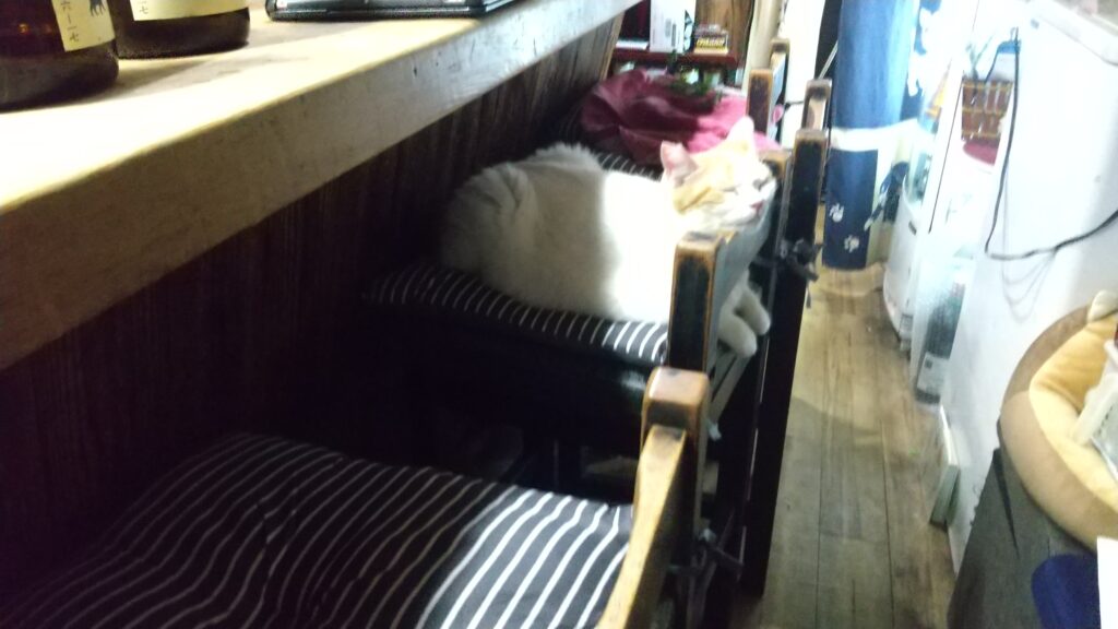 お店の扉を開けると看板猫のヒメちゃんがこんな感じで