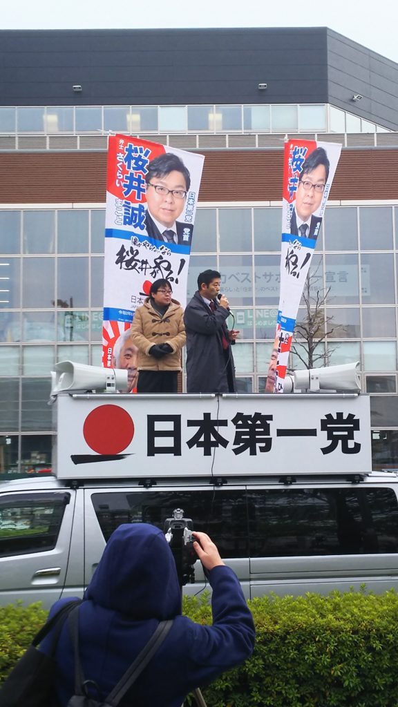 買い物に先で日本第一党の桜井誠の演説に遭遇。