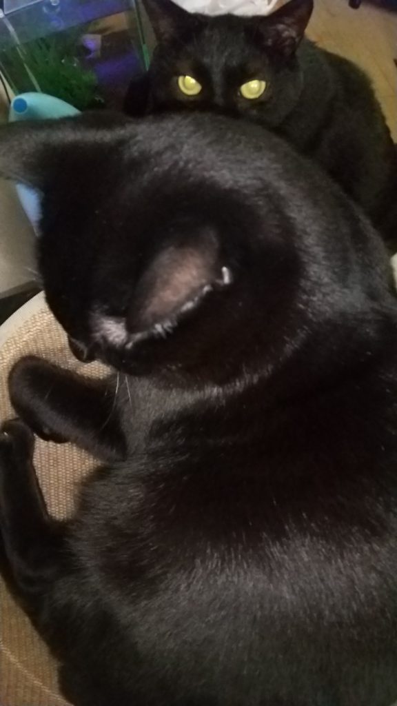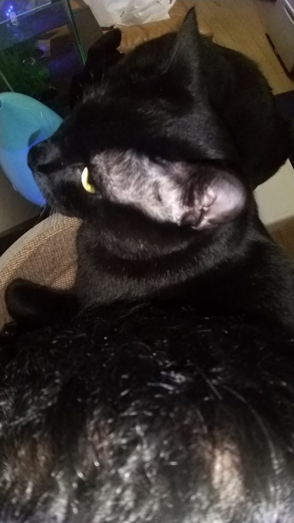 オカキの背中に顔を埋める私。オカキは遠くを見てますな。