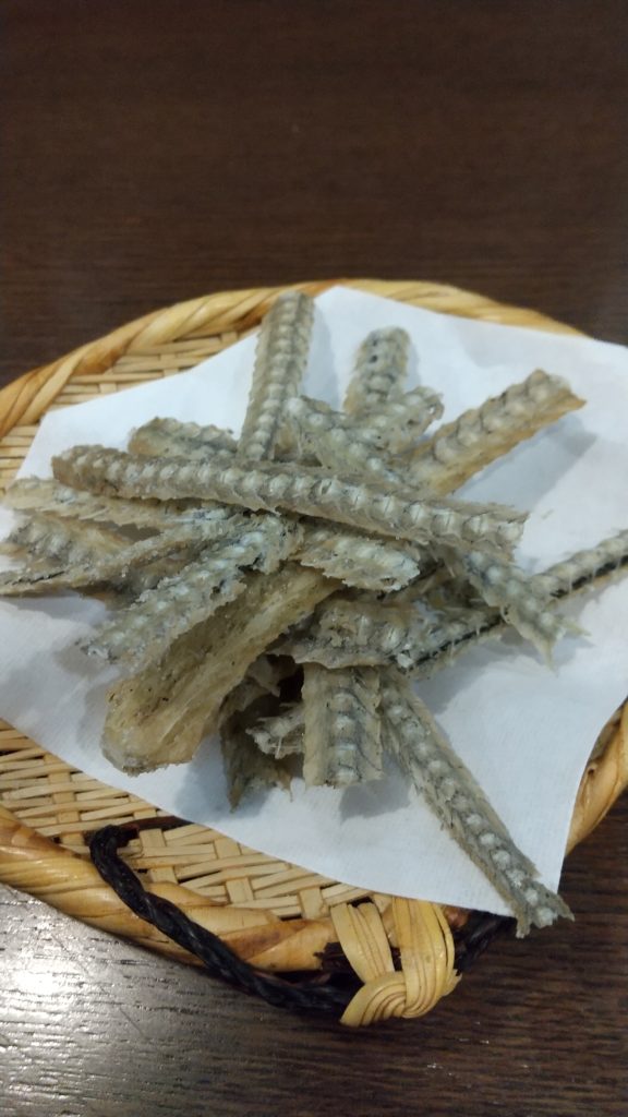そして骨の唐揚げ。これがまた塩が効いてて美味しい。