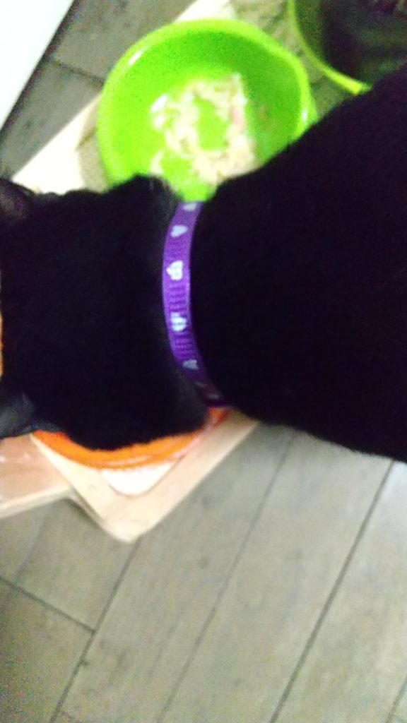今までの首輪は装着した瞬間に自分で外そうと手足を使って凄かったけど