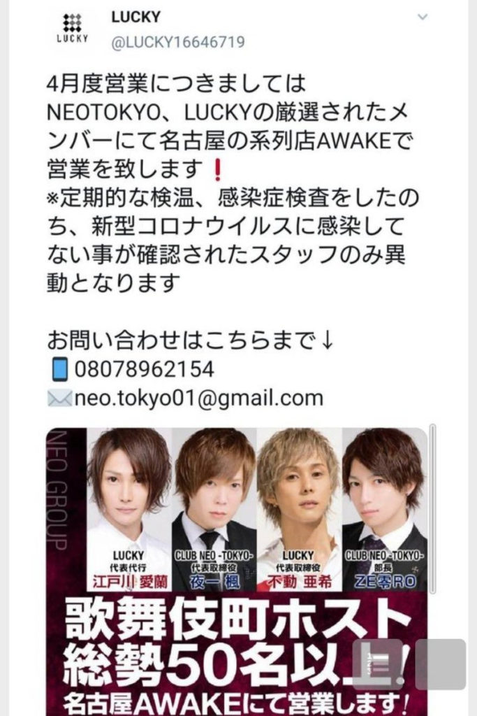 外出自粛要請が出てる東京から脱出して名古屋で営業してるとか(`A´)